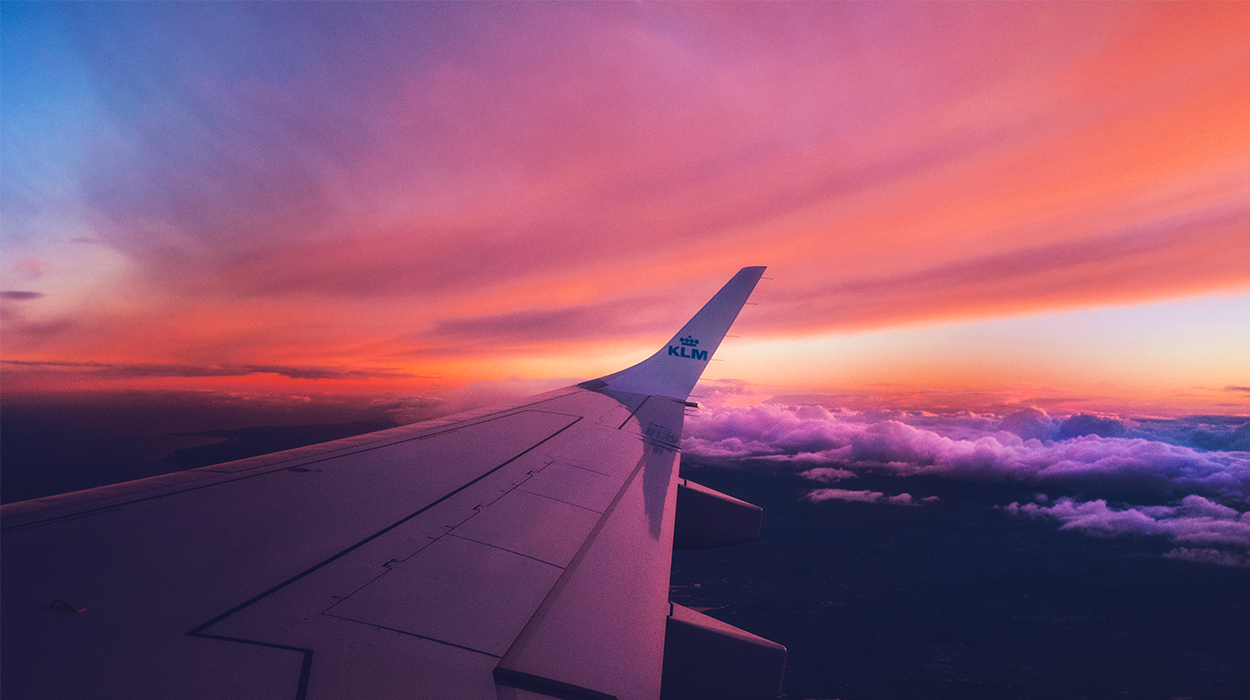 I always take my camera with me on the plane because sometimes you can get some great shots chasing a sunset. This is a shot I took flying back from The States and the sky seemed to have a million colours.