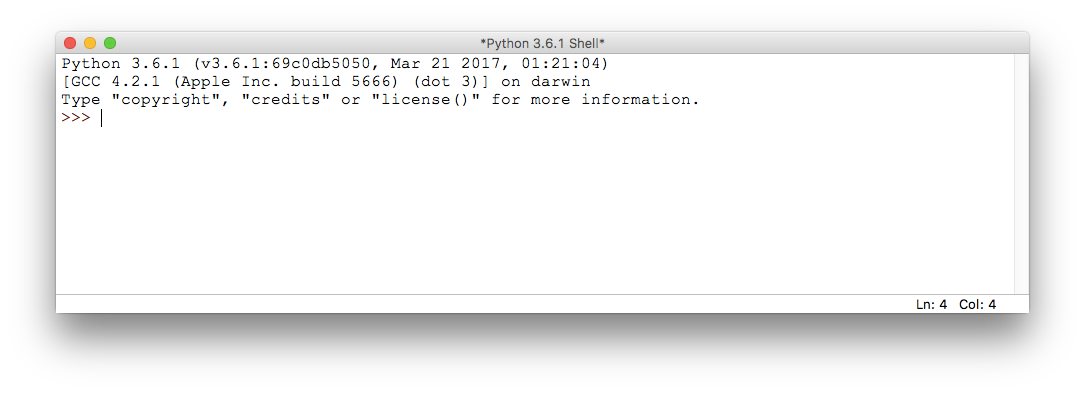 파이썬 인터프리터와의 첫 만남은 아래와 같이 시작된다. 자신의 운영체제에 따라 화면이 다소 다르게 보일 수 있으니 걱정하지 않아도 된다.