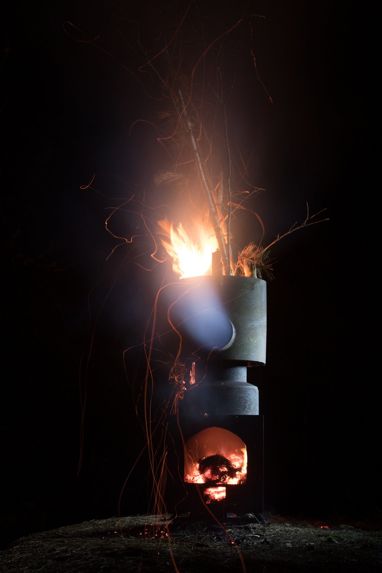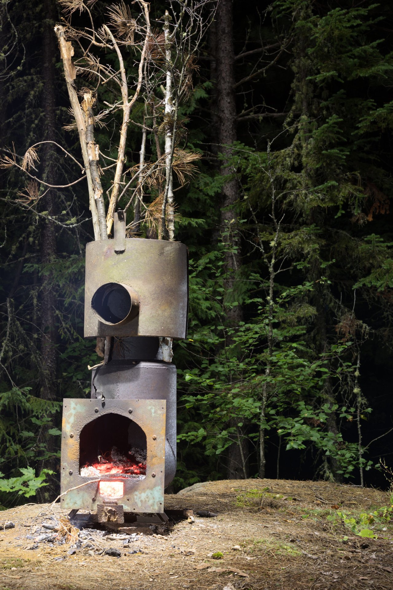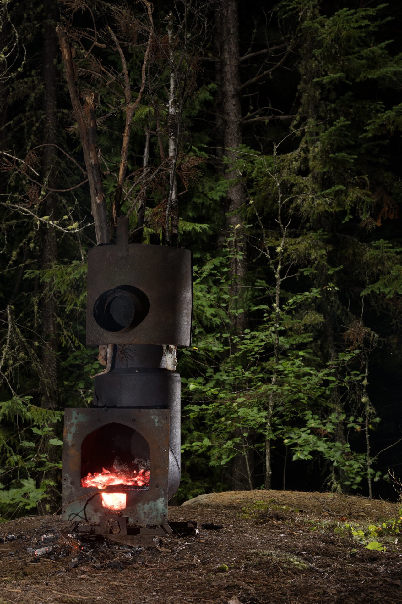 Setting it up to serve as a model, behold our wood stove altar deep in the woods of Northern Ontario. Under the moonlight we stared at orion who smiled at the offering as he undid his belt and whipped it out and did one of those you know, helicopter things all like wheee-aah!