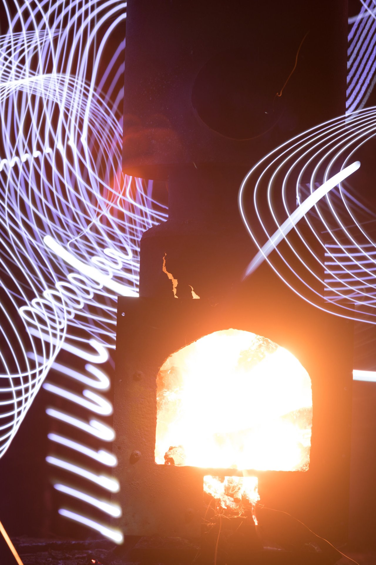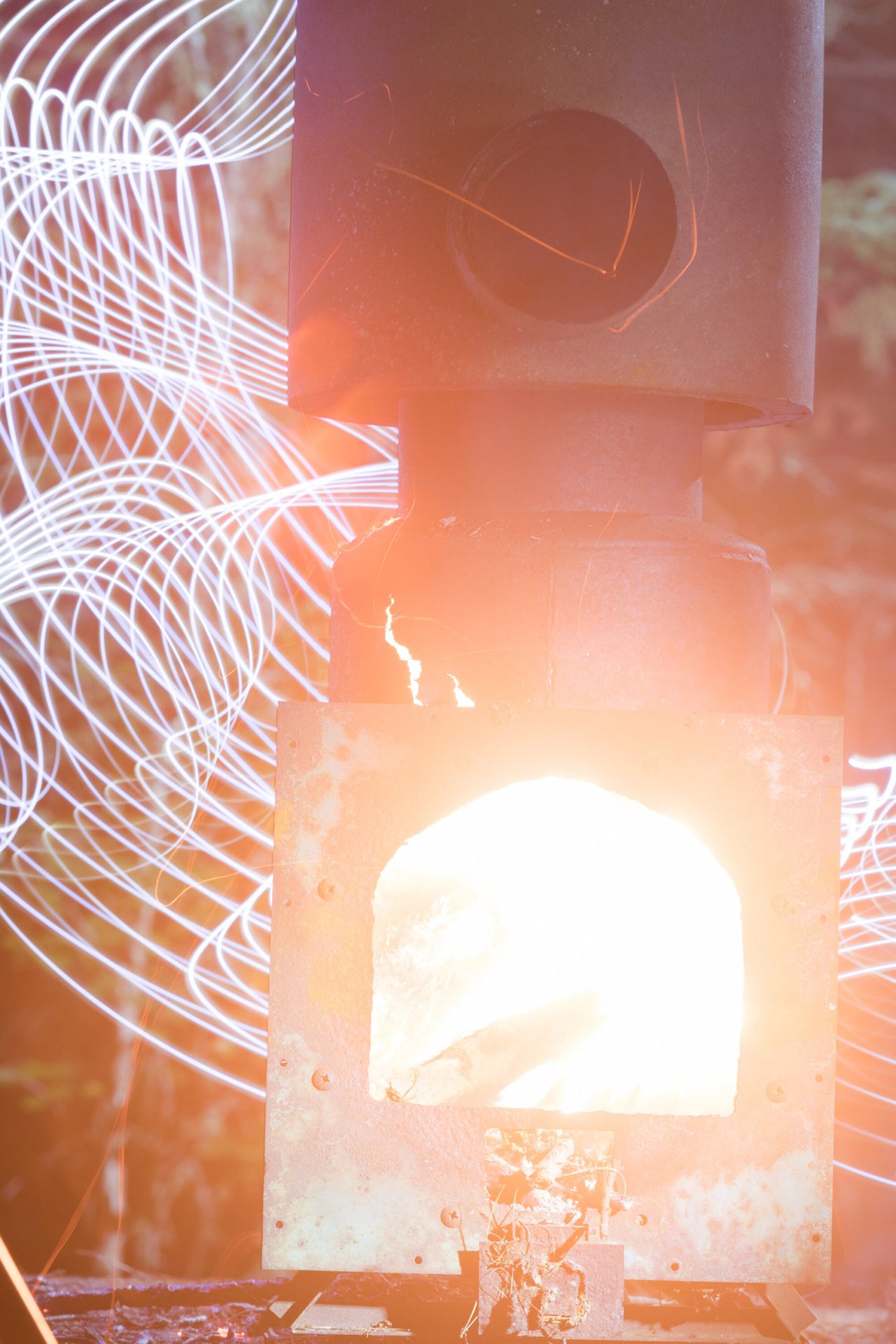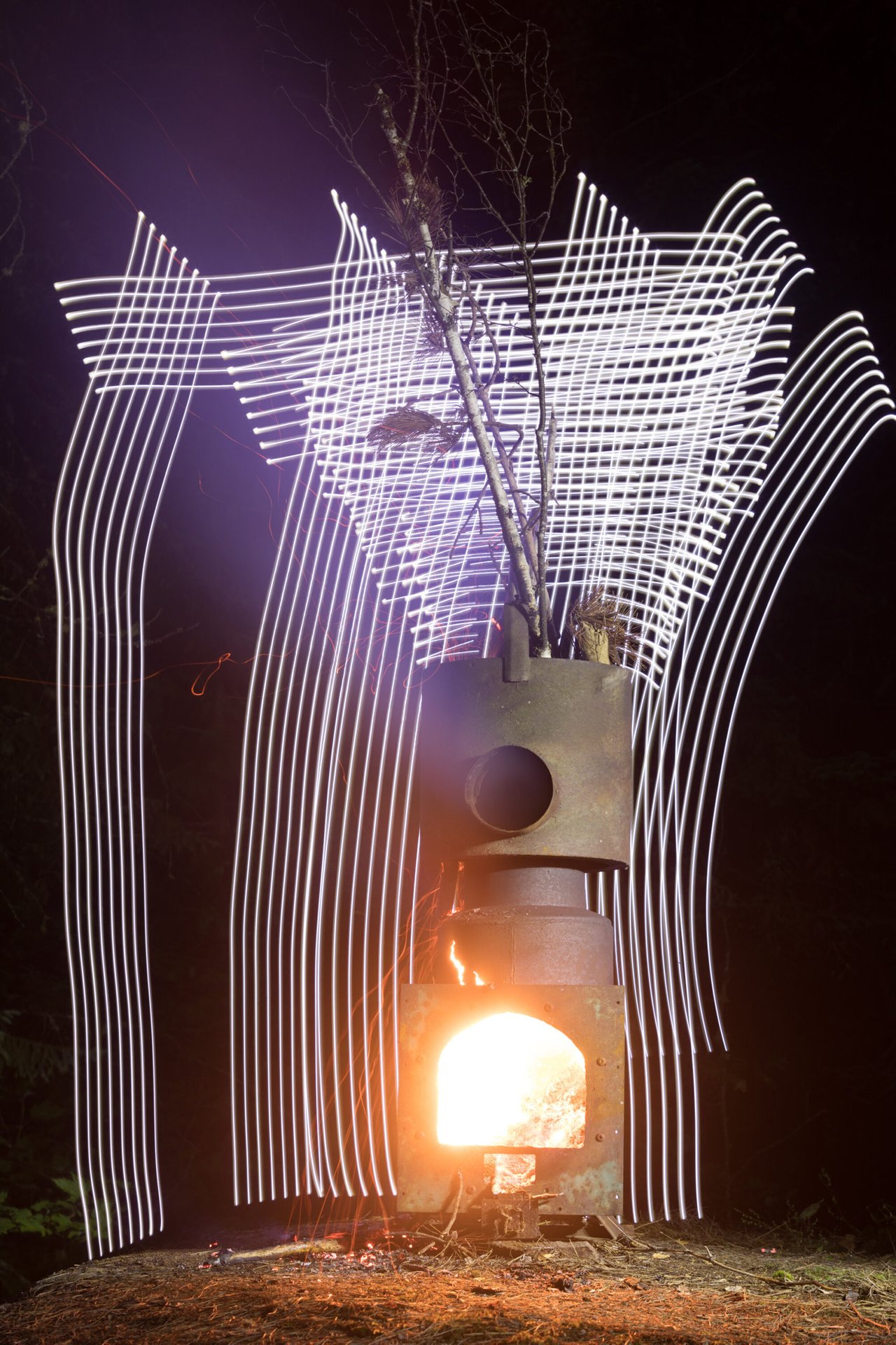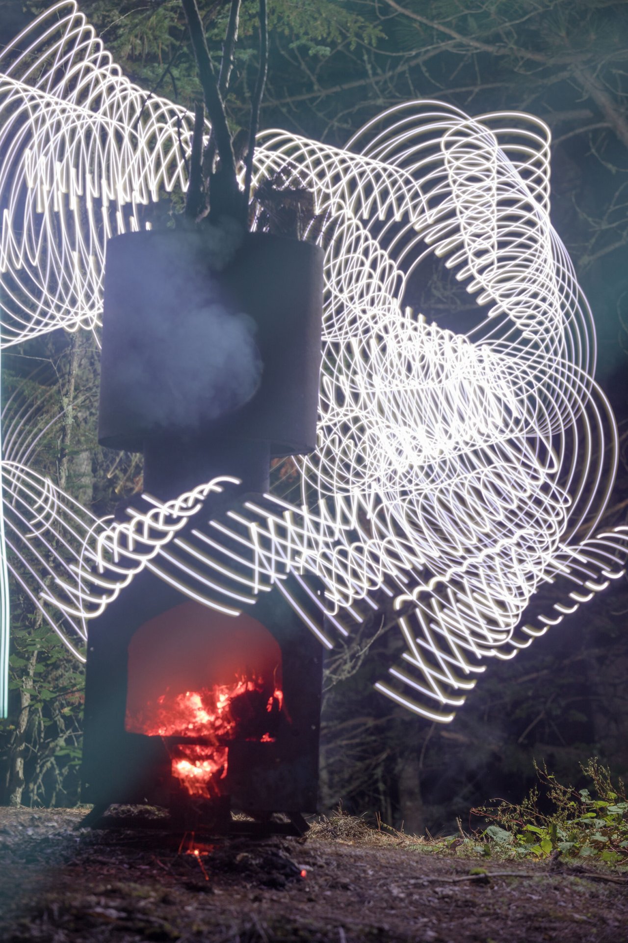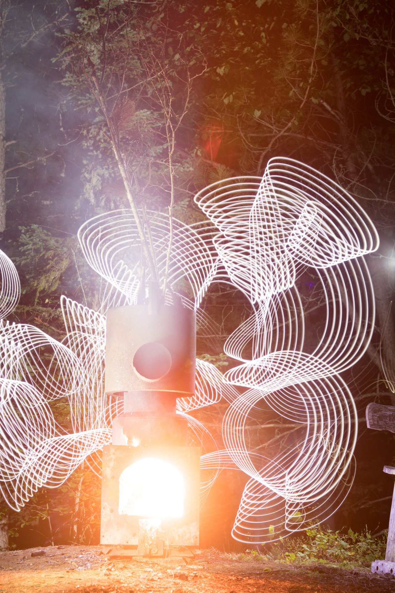 In the woods, @faeryboots and I found part of an old boiler, furnace, some sort of heat exchanger, whatever it was it was RUSTY. Found in the woods, brought back to life with the art and SCIEAAANCE^froths at mouth^ of lightpainting...