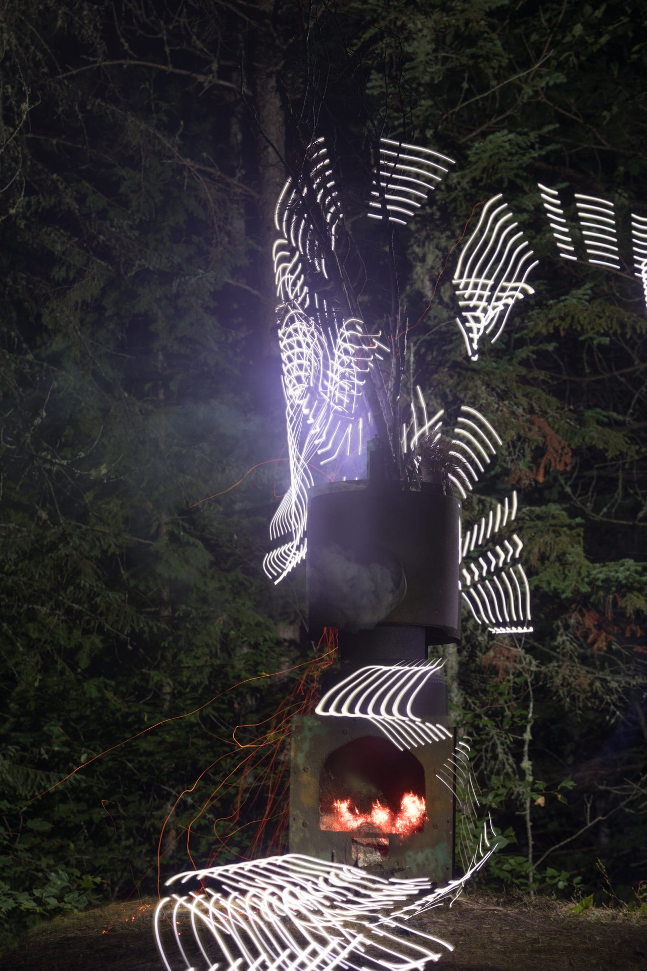 swirled and whirled about flailed in the night one could say, swung about, hung out, you know… we went ‘streaking’ in the night with our light wands out and about swung wild and free in the Canadian night seeking pixelized representations of a scene depicted through time frozen into a series of hexadecimal codes, encoded into a raw format onto an SD card, a series of ones and zeros to bring you the light captured… straight into your photon receptors.
