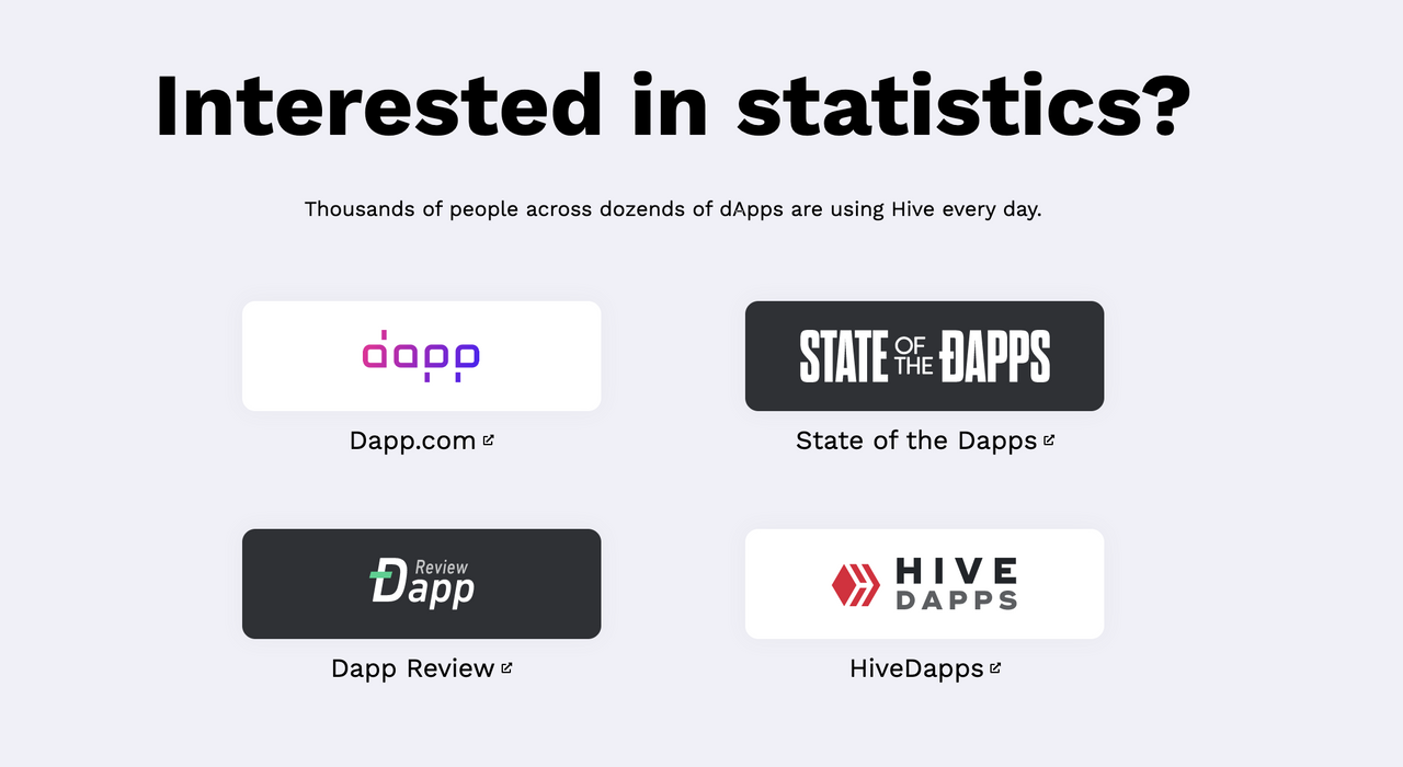 Below the apps section, is now a statistics section, featuring the most prominent dapp statistics websites