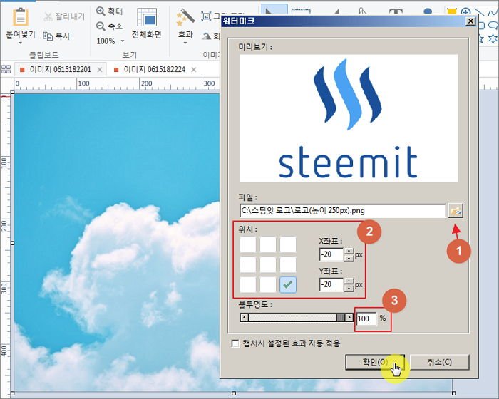 이제 픽픽을 사용해서 스팀잇 로고를 넣어보겠습니다.^^