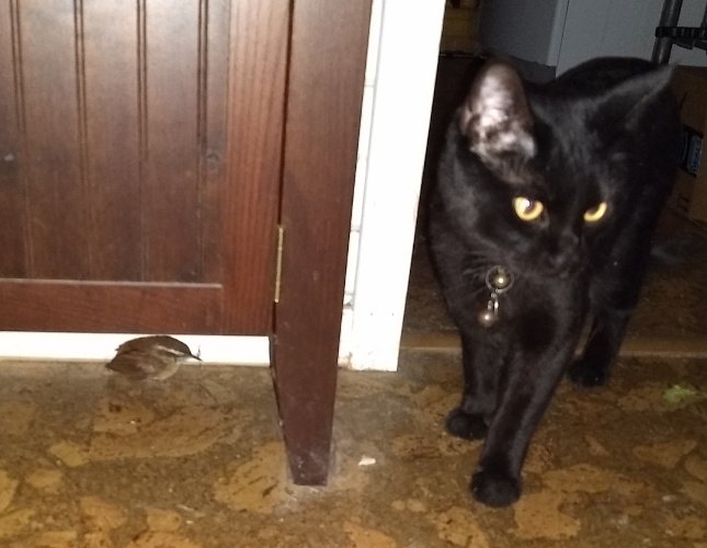 Example of being conflicted: I am rooting for my cat. But I feel sorry for the bird. #cat #bird #life