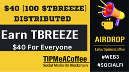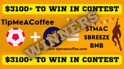 tipmeacoffee(25)•in #hive-167922•1140 days agoANNOUNCEMENT: $40 Winners By TipMeACoffee Hello everyone! 100 $BREEZE Winners As recently we announced an airdrop of 100 $BREEZE worth $40 by the Breeze Foundation on behalf of TipMeACoffee a web3 socia...67tipmeacoffee(25)•in hive-167922•1140 days agoANNOUNCEMENT: $40 Winners By TipMeACoffee Hello everyone! 100 $BREEZE Winners As recently we announced an airdrop of 100 $BREEZE worth $40 by the Breeze Foundation on behalf of TipMeACoffee a web3 socia...67