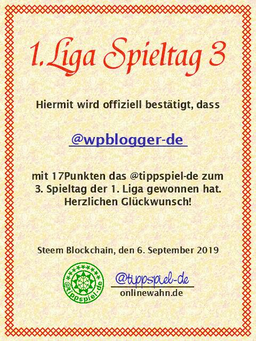 tippspiel-de(25)•in #deutsch•2326 days agoGewinner 1.Liga Spieltag 3 des @tippspiel-deDer 3. Spieltag liegt hinter uns und nun steht erstmal eine Länderspielpause zum durchatmen an.Doch vorher: Die Auswertung des 3. Spieltags: Die Endergebnisse d...318$0.03tippspiel-de(25)•in deutsch•2326 days agoGewinner 1.Liga Spieltag 3 des @tippspiel-deDer 3. Spieltag liegt hinter uns und nun steht erstmal eine Länderspielpause zum durchatmen an.Doch vorher: Die Auswertung des 3. Spieltags: Die Endergebnisse d...318$0.03