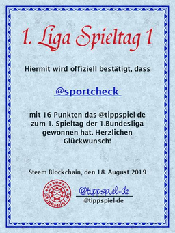 tippspiel-de(25)•in #deutsch•2344 days agoGewinner 1.Liga Spieltag 1 des @tippspiel-deAuch die 1. Bundesliga hat nun den 1. Spieltag hinter sich. Das bedeutet auch für die erste Liga gibt es den ersten Tippspiel Gewinner. Die Endergebnisse des 1....6910$0.65tippspiel-de(25)•in deutsch•2344 days agoGewinner 1.Liga Spieltag 1 des @tippspiel-deAuch die 1. Bundesliga hat nun den 1. Spieltag hinter sich. Das bedeutet auch für die erste Liga gibt es den ersten Tippspiel Gewinner. Die Endergebnisse des 1....6910$0.65