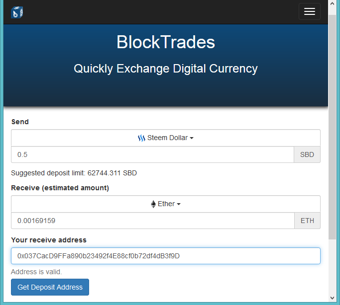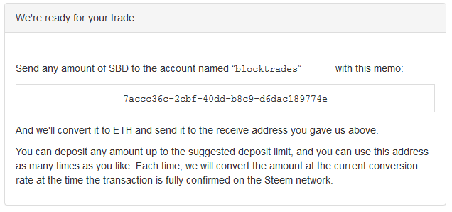 스팀 지갑 페이지에서 스팀 달러를 "blocktrades" 계정에 메모를 넣어 보냅시다.