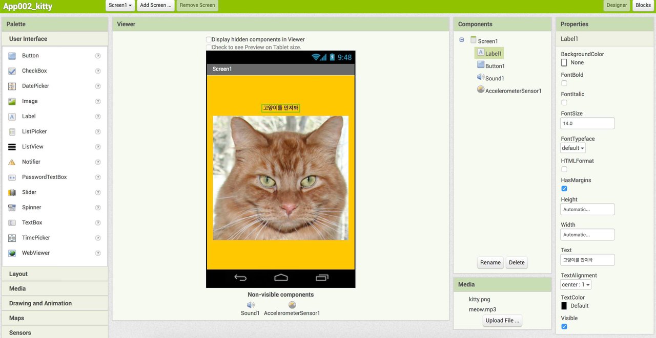 이것이 내가 만든 고양이 울음소리 앱이다.^^