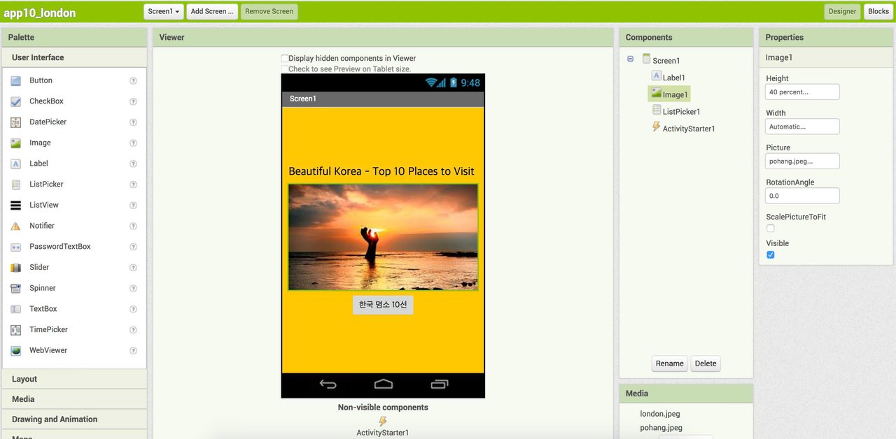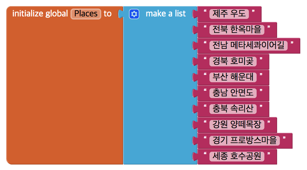 - ListPicker의 Text를 '한국 명소 10선'으로 변경