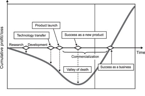 위 그림은 흔히 업계 흔히 말하는 죽음의 계곡. 즉 데스밸리입니다. 빠른 시기에 운좋게 자금을 받은 기업이나, 그렇지 않은 기업 대부분이 저 데스밸리를 체험하게 됩니다. 실제 제품이 나오지 않았거나 나왔던 경우라도 실제 시장에서 제대로 인정받기 까지는 꽤 적지 않은 시간이 소요됩니다. 결국 투자자는 창업자와 마찬가지로 저 죽음의 계곡이라고 하는 고난의 시간을 반드시 견뎌내야만 합니다. 그리고 이건 항상 뒤따르는 필수적인 단계이기도 합니다.