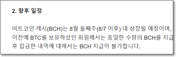국내의 그 어떤 거래소보다 느리게 bch를 지급함으로써