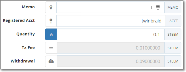 Quantity : 보낼금액 최소가 0.1 스팀일겁니다.