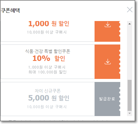 이후 2천원씩 쿠폰을 주는데 2만원이상일때만