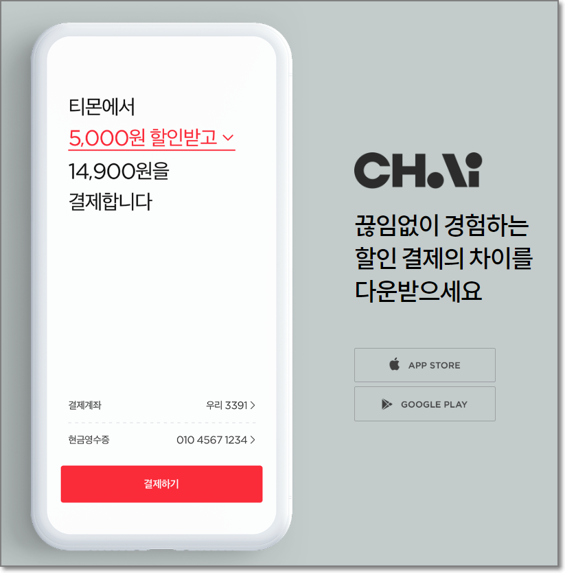 추가로 차이결제할인으로 2천원 추가할인이 되는 것을