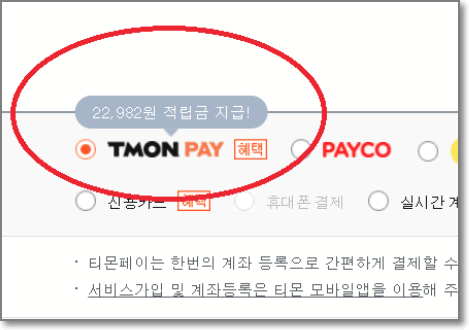티몬페이라는 결제수단은 저렇게 '적립금' 이러면서