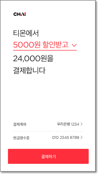 5천쿠폰(티몬할인) + 2천쿠폰(차이결제할인)