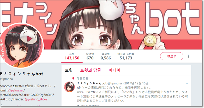 모나봇 계정은 해당 트위터 계정과 잔금을 기억해두었다가