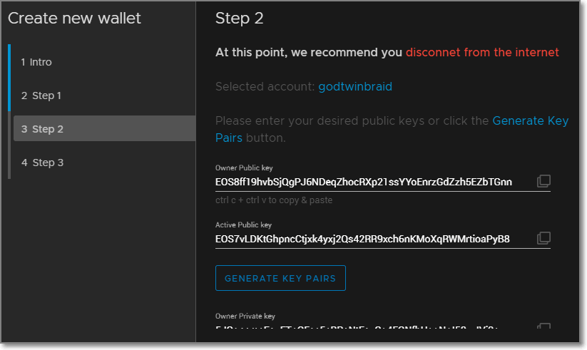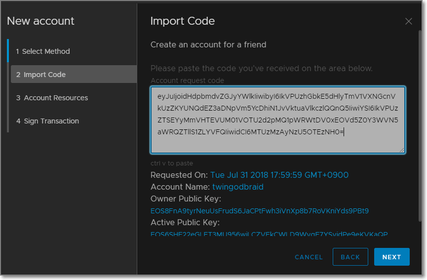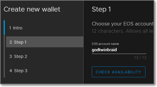 첫번째 스탭은 12자짜리 이오스 계정을 생성하는 것입니다.