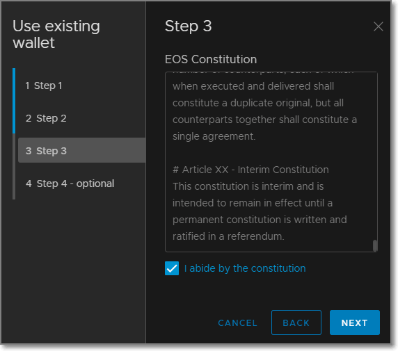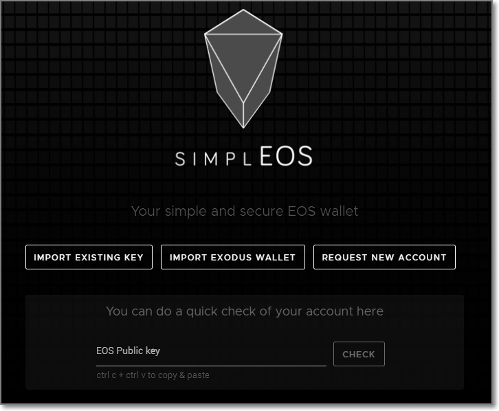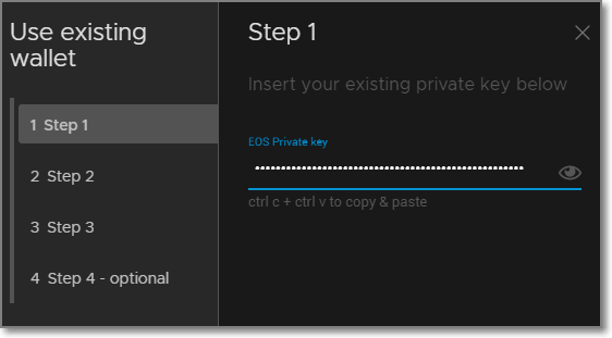이미 계정이 있다면 즉각 지갑을 활성화 할 수 있습니다.IMPORT EXISTING KEY를 클릭하면