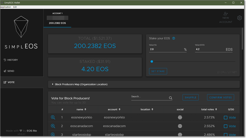 여튼 지갑을 실행시켜도 이오스의 특성답게