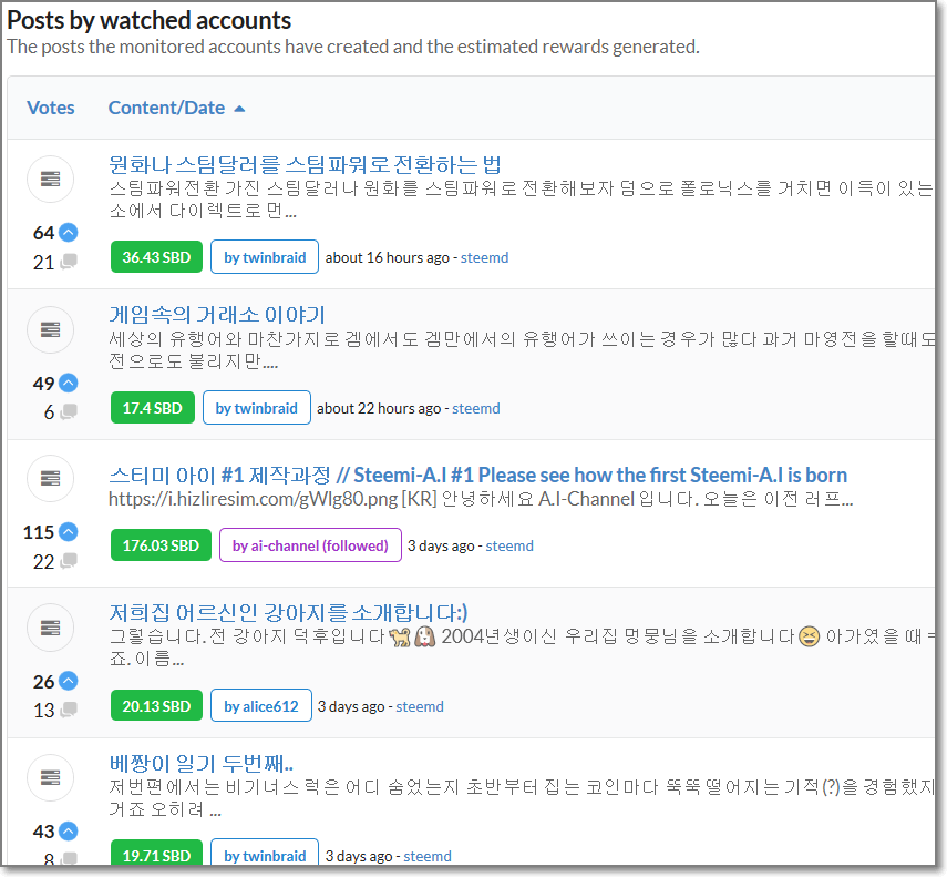 Steemd.com의 정보도 매우 좋지만