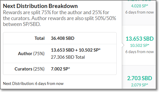 실제 보상은 75% 저자보상, 25% 큐레이션 보상