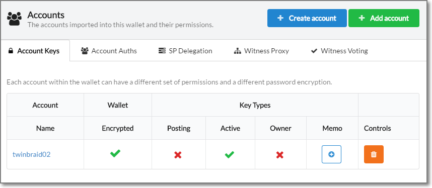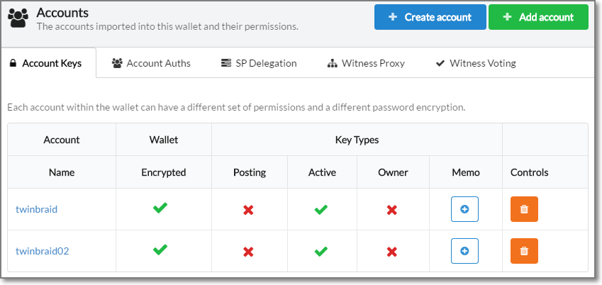 현재 로그인된 계정들이 가진 지갑 권한을 나타냅니다.