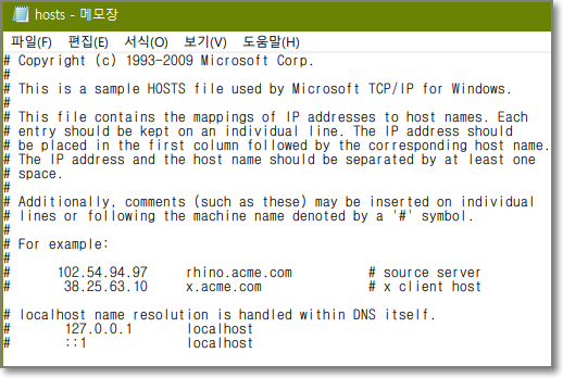 이런식으로 적혀 있다면www.naver.com 을 칠 경우 네이버가 아니라125.209.222.142 라는 주소로 연결됩니다.