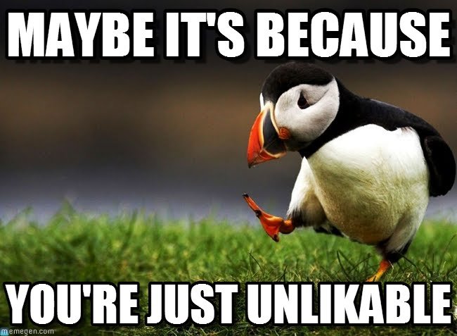넌 무례하고, 짜증나게하고, 멍청하고 비호감이니까, 네가 친구 없는 건 당연한거지.