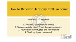ukay66(25)•in #hive-185702•2068 days agoHarmony ONE account / wallet recovery[](https://3speak.online/watch?v=ukay66/ypmnfcxr) ▶️ Watch on 3Speak --- I made this video for newcomers in crypto world. This video shows how important it is t...1$0.00ukay66(25)•in hive-185702•2068 days agoHarmony ONE account / wallet recovery[](https://3speak.online/watch?v=ukay66/ypmnfcxr) ▶️ Watch on 3Speak --- I made this video for newcomers in crypto world. This video shows how important it is t...1$0.00