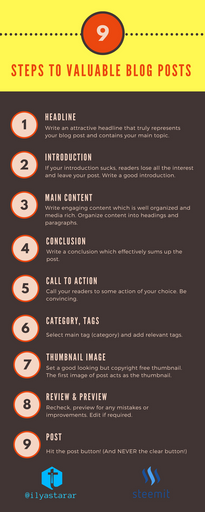 ilyastarar(25)•in #howto•3106 days ago9 Steps to Engaging Posts on SteemitA lot of people need help in writing and formatting their posts. Some new Steemians who do not have a blogging background have shared discomfort with their cont...7418$0.19ilyastarar(25)•in howto•3106 days ago9 Steps to Engaging Posts on SteemitA lot of people need help in writing and formatting their posts. Some new Steemians who do not have a blogging background have shared discomfort with their cont...7418$0.19