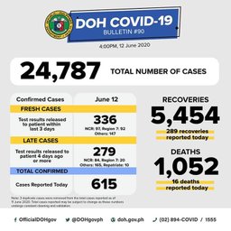 unlisteem(25)•in #covid19•2052 days agoDOH COVID-19 CASE BULLETIN June 12, 2020DOH COVID-19 CASE BULLETIN As of 4PM, June 12, 2020, the Department of Health reports the total number of COVID-19 cases at 24,787. In addition to the 336 fresh...260$0.02unlisteem(25)•in covid19•2052 days agoDOH COVID-19 CASE BULLETIN June 12, 2020DOH COVID-19 CASE BULLETIN As of 4PM, June 12, 2020, the Department of Health reports the total number of COVID-19 cases at 24,787. In addition to the 336 fresh...260$0.02