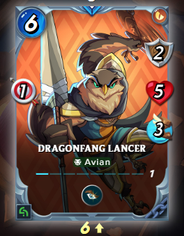 Now, since I put aside my first copy and combined five copies, I have a Level 2 Soulbound Dragonfang Lancer Rare card and a Level 1 Unbound Rare Dragonfang Lancer card, which I own outright, so I can trade them whenever I want. While I don't have any plans to do so right now, if I do, I could easily sell them on the open market and make some DEC.