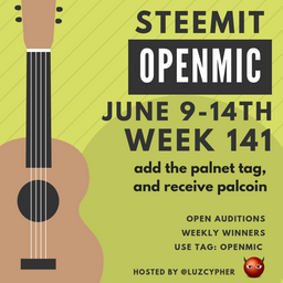luzcypher(25)•in #openmic•2411 days agoSteemit Open Mic Week 141 - Record Your Performance And Win Steem - Sponsored By @ausbitbank, @pfunk And @luzcypherSteemit Open Mic is an online, live music venue to give musicians a chance to share their music with the Steemit community and get their music heard. NOTICE TO ...28luzcypher(25)•in openmic•2411 days agoSteemit Open Mic Week 141 - Record Your Performance And Win Steem - Sponsored By @ausbitbank, @pfunk And @luzcypherSteemit Open Mic is an online, live music venue to give musicians a chance to share their music with the Steemit community and get their music heard. NOTICE TO ...28