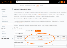 waiviolabs(25)•in #waivio•1799 days agoWaivio update: VIP tickets for new Hive accountsWaivio makes it easy to open new Hive accounts and invite your friends to join Hive. HiveOnBoard.com VIP tickets are now available for purchase (5 HIVE) for reg...253$8.10waiviolabs(25)•in waivio•1799 days agoWaivio update: VIP tickets for new Hive accountsWaivio makes it easy to open new Hive accounts and invite your friends to join Hive. HiveOnBoard.com VIP tickets are now available for purchase (5 HIVE) for reg...253$8.10