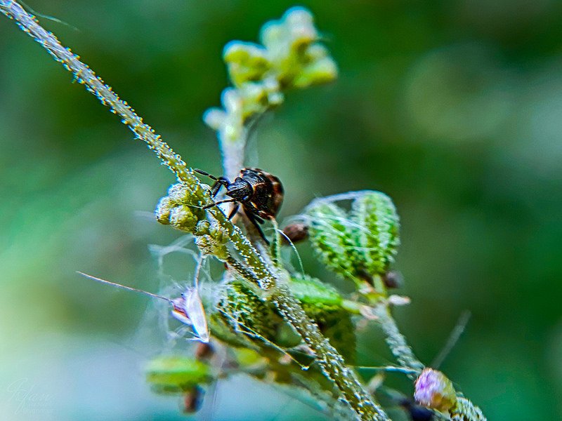 A small bug is perched on a bush plant has attracted my attention to shot it, a thing commonly seen in our place. Taken with Samsung smartphone camera additional macro lens.