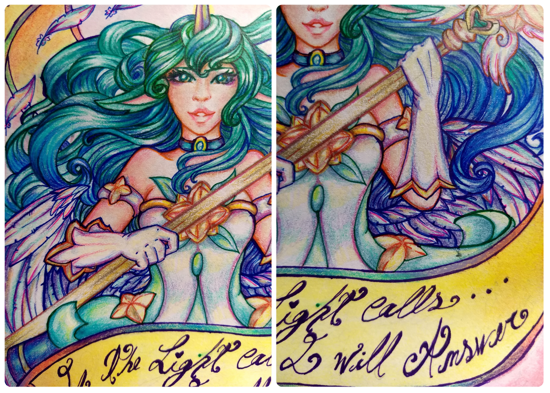 Me siento tan feliz con el resultado, que se convirtió en una de mis piezas favoritas de entre todo mi repertorio de dibujos. Simplemente no puedo dejar de mirar como todos los colores se integran y nada parece estar fuera de lugar, o que al menos yo personalmente no le encuentro ningún detalle que quisiera cambiarle.