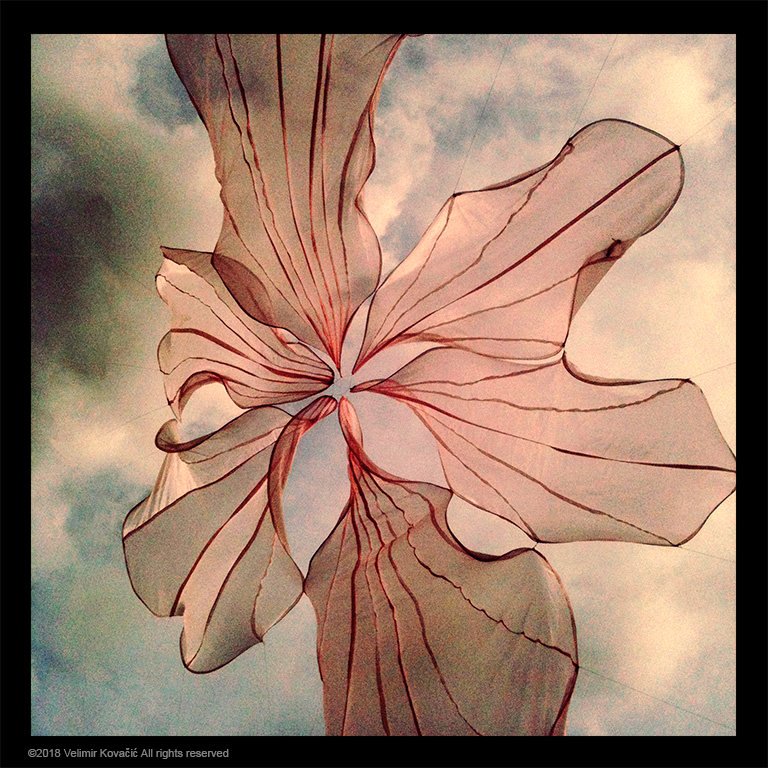 In this photograph, the linear curves become mesmerizing as they fill the sky. I found myself overwhelmed by the movement which the wind produced in the cloth. One can almost feel the flutter of the sails or rather of petals of this beautiful flower made of wind.