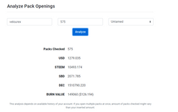 velourex(25)•in #steemmonsters•2219 days agoSteam Monsters pack opening analysis Here is a little snippet of my last 575 packs being opened. They were opened with both potions being used. I bought the packs on Thursday 12/12/19 when that pac...2velourex(25)•in steemmonsters•2219 days agoSteam Monsters pack opening analysis Here is a little snippet of my last 575 packs being opened. They were opened with both potions being used. I bought the packs on Thursday 12/12/19 when that pac...2