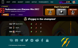 vicaaciv(25)β’in #sptβ’2404 days agoMy second time participated in the tournament and some progress!Hola! This is my second tournament in Steam Monsters, I wrote about the first one this post: The first time participated in the tournament and have lost!). And ...4vicaaciv(25)β’in sptβ’2404 days agoMy second time participated in the tournament and some progress!Hola! This is my second tournament in Steam Monsters, I wrote about the first one this post: The first time participated in the tournament and have lost!). And ...4