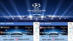 victordeporte(25)•in #spanish•2890 days agoPREVIA DE CHAMPIONS, CHELSEA VS BARCELONA,¿ LIO EN EL PSG? NO SE LO PIERDAN.Empezamos a palpitar por segunda semana consecutiva la UEFA CHAMPIONS LEGUE Previa F.C. Barcelona El Barcelona jugara esta tarde en Stanford Bridge,...10$0.00victordeporte(25)•in spanish•2890 days agoPREVIA DE CHAMPIONS, CHELSEA VS BARCELONA,¿ LIO EN EL PSG? NO SE LO PIERDAN.Empezamos a palpitar por segunda semana consecutiva la UEFA CHAMPIONS LEGUE Previa F.C. Barcelona El Barcelona jugara esta tarde en Stanford Bridge,...10$0.00