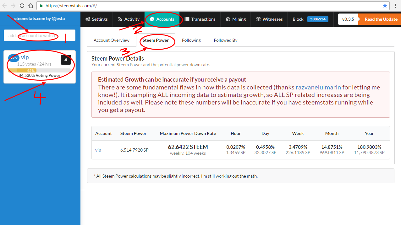 그러면 1번 계정명 아래 4번에 현재 본인의 파워보팅 %와 24시간내 보팅수가 나옵니다.