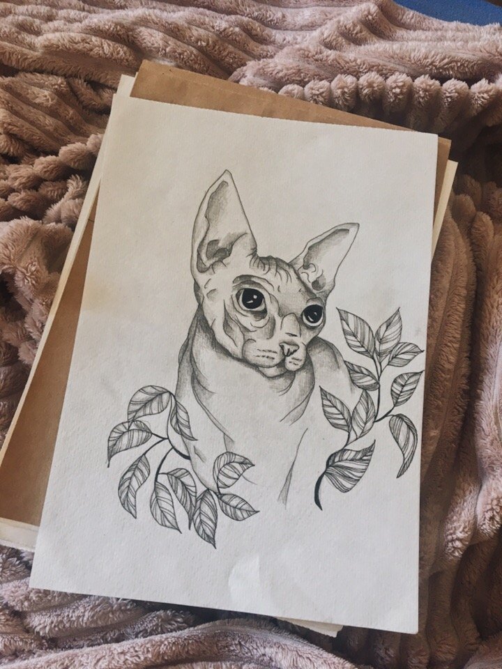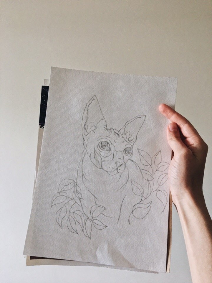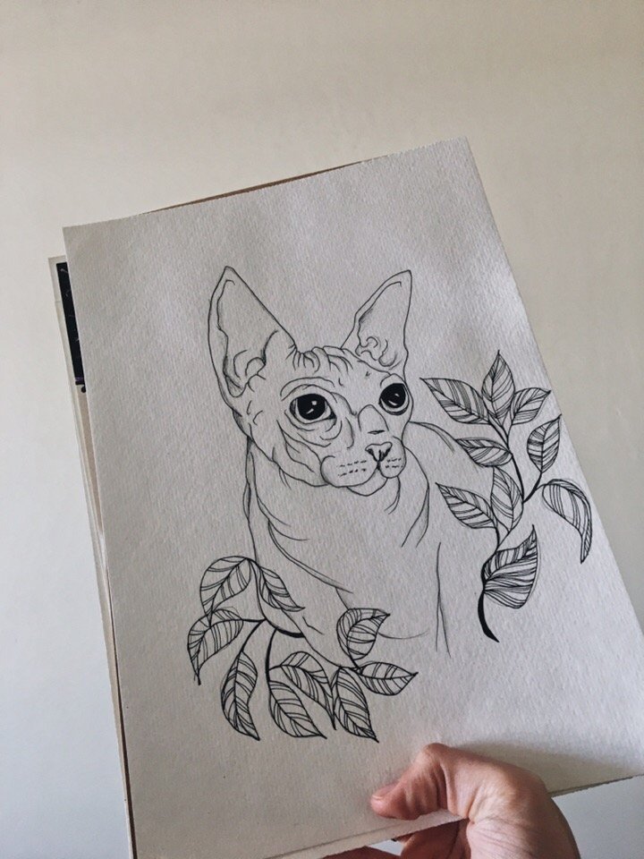 Hi guys! I want to show you another new sketch. This is another cat, this is a sphinx. This drawing does not matter, it's just a cute drawing of a cute cat! I drew the usual gel pen on watercolor paper. I would be grateful for the support!