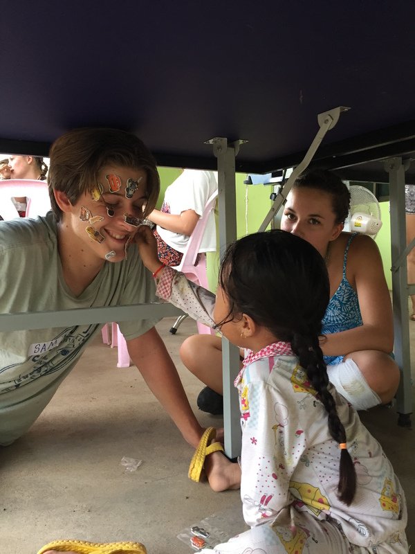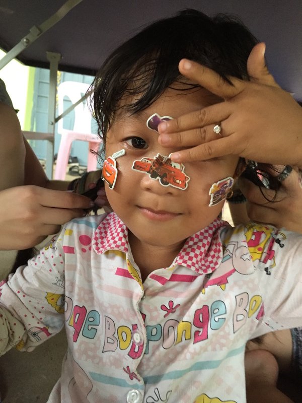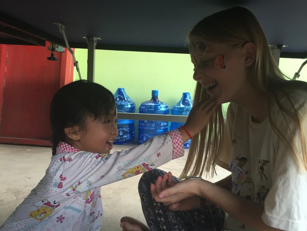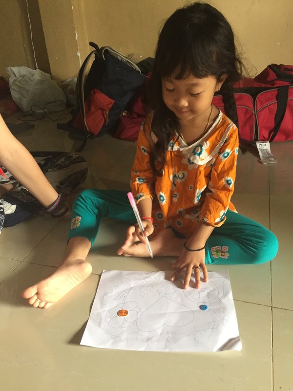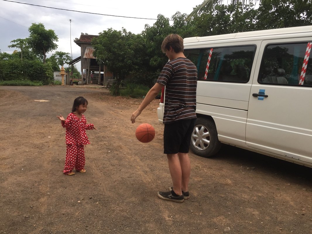 On the third day during lunch some of us were playing sai, a traditional Khmer game where a shuttlecock is kicked around, and heard a high pitched laugh. We turned to find a small, smiling girl. As we made eye contact she ran away screaming and laughing, but kept coming back for more. We chased her for hours. She would hide under our ping-pong table where no one could get to her and throw ping-pong balls at us. Eventually her grandpa called and she had to go home. We found out her name was Liza. Her grandparents owned the house we were renting.
