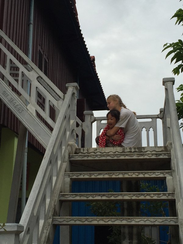 Throughout the rest of our time in Kampong Cham she showed up daily whenever we were home and we spent hours with her. We had our own little language since she didn't speak much khmer and neither did we. One of her favorite things to do was climb to the top of the outdoor stairs leading to the second floor and throw stuff at Sam. She would also yell at Sam and make funny noises until he looked and then quickly turned away laughing.