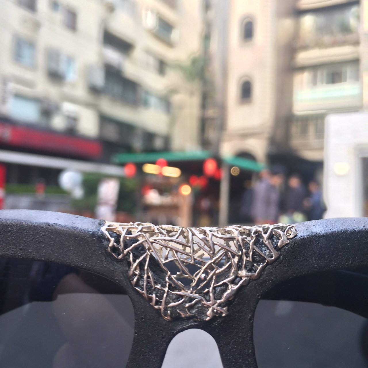 那天工作到頭昏腦漲的時候,抬頭看到某人正在給他的眼鏡拍照上架。我跟著湊過去,拿著眼鏡在馬路中間拍了幾張 我覺得明明很好看但被說不能用 的假掰照。