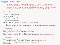 yjcps(25)•in #blog•2705 days agoLearn Python with Steem #10 #11 笔记Learn Python with Steem 10 11 笔记 --- [toc] 划重点 - 获取用户的文章列表 通过 steem.Steem.getaccounthistory 获取用户的动态,从中筛选出文章的 permlink。 再用 steem.Steem.getcontent 方法获取每篇文章的详细信息。 ...2716$0.30yjcps(25)•in blog•2705 days agoLearn Python with Steem #10 #11 笔记Learn Python with Steem 10 11 笔记 --- [toc] 划重点 - 获取用户的文章列表 通过 steem.Steem.getaccounthistory 获取用户的动态,从中筛选出文章的 permlink。 再用 steem.Steem.getcontent 方法获取每篇文章的详细信息。 ...2716$0.30