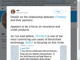 neohub(-25)•in #neo•2995 days ago[1 items] - NEO social news alert — November 12th, 2017, 21:10NM on Twitter “Details on the relationship between TheKey and their partners. Appears to be a focus on insurance and credit products. As I've said before, FinTe...10$0.00neohub(-25)•in neo•2995 days ago[1 items] - NEO social news alert — November 12th, 2017, 21:10NM on Twitter “Details on the relationship between TheKey and their partners. Appears to be a focus on insurance and credit products. As I've said before, FinTe...10$0.00