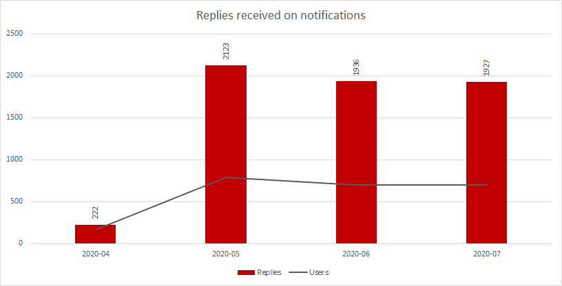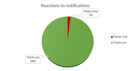 These notifications are really appreciated and generate a lot of positive feedback. We have around 750 users engaging with us each month.